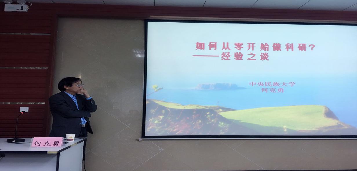 3044am永利集团3044noc研究生会宣传部讯 3月20号下午,由永利官网承办的2019年第2期3044am永利集团3044noc“文科讲坛”在3044am永利集团3044noc201会议室成功举办。本期论坛特邀中央民族大学何克勇教授做了题为“如何从零开始做科研——经验之谈”的学术讲座。讲座由3044am永利集团3044noc副院长宁梅教授主持,永利官网师生参加了本次讲座。