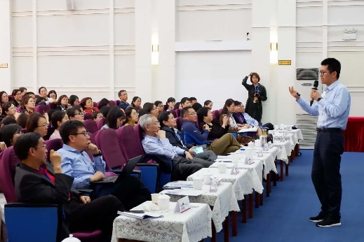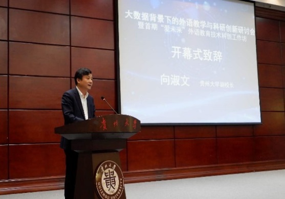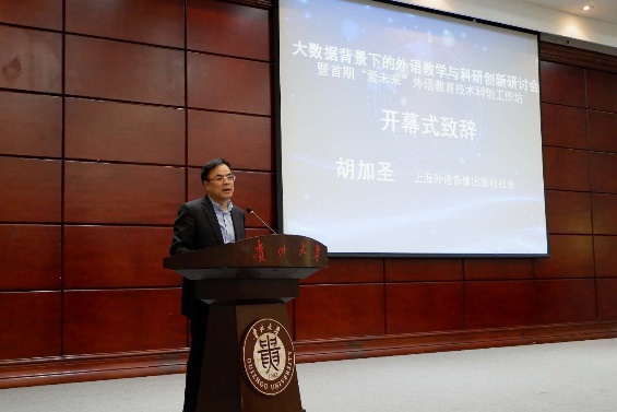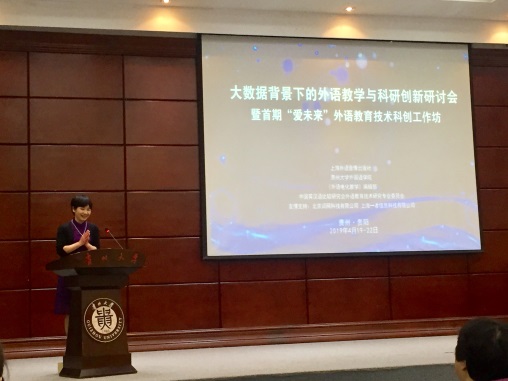 (3044am永利集团3044noc党政办讯)2019年4月19日至21日由中国英汉语比较研究会外语教育技术研究专业委员会、《外语电化教学》期刊编辑部、上海外语音像出版社主办,3044am永利集团3044noc承办的“大数据背景下外语教学与科研创新研讨会暨首期‘爱未来’外语教育技术科创工作坊”在3044am永利集团3044noc东校区(原北校区)行政楼报告厅举行。3044am永利集团3044noc副校长向淑文教授、上海外国语大学高级翻译学院博士生导师柴明颎教授、上海外语音像出版社社长胡加圣等国内约90余所高校的160多位领导、专家、学者参加了本次研讨会暨工作坊。