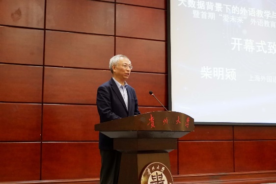 柴明颎教授在开幕式致辞时就英语教学的发展过程进行介绍。他表示时代不同,社会需求不同,大数据将引导外语教学发展,为未来打下坚实基础。