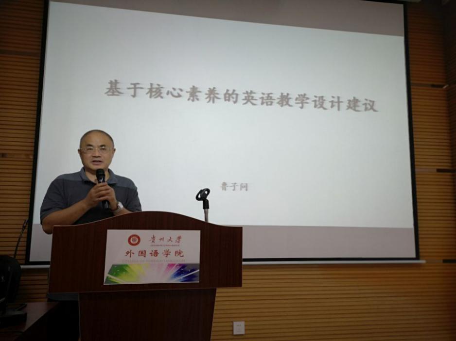 3044am永利集团3044noc讯2 019年8月1日上午,教育部教师教育资源专家委员会专家、教育部首批国培专家、兴义民族师范学院中国民族师范教育研究中心主任鲁子问教授到永利官网为贵州省中小学英语骨干教师能力提升培训班学员做了一场主题为“基于核心素养的英语教学设计建议”的讲座,培训班全体学员参加了此次讲座,讲座由永利官网院长周杰主持。