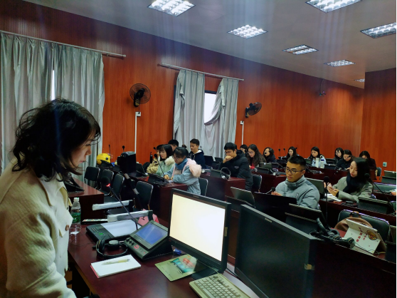3044am永利集团3044noc研究生科讯 11月27日下午四点三十分,永利官网外语志愿者社团邀请本院翻译系口译教师王蔚老师作讲座。此次讲座的题目为“从孙杨听证会口译‘翻车’事件看职业会议口译”。讲座在外语楼501室举行,外语志愿者社团全体学员及部分外院学生参加了本次讲座。